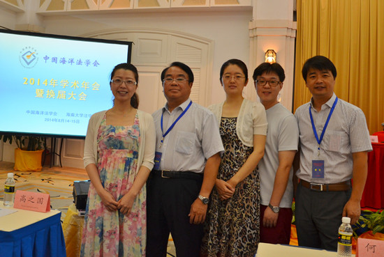 2014年8月14日至15日,由中国海洋法学会主办、海南大学承办的中国海洋法学会2014年学术年会暨换届大会在海南省琼州市博鳌镇召开,来自北京大学、清华大学、武汉大学、南京大学、厦门大学、海军指挥学院等高校,中国法学会、国家海洋局海洋发展战略研究所、中国现代国际关系研究院、中国社会科学院等研究机构,外交部、国家海洋局、最高人民法院、海口海事法院等国家机关,以及中国法制杂志社、中国法制出版社、法律出版社、时事出版社、中国海洋石油公司等共67个相关单位的131位专家、学者出席了会议。中国海洋法学会副会长、新葡的京集团8814副校长黄硕琳教授带领新葡的京官网海洋政策与法律研究所唐议、褚晓琳、刘画洁、陈祺老师参加了会议。