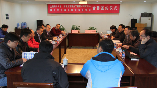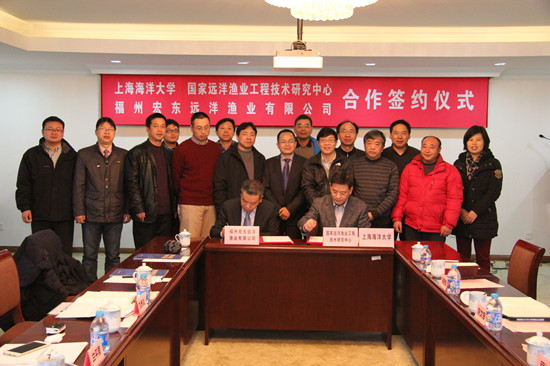 2014年12月28日,新葡的京集团8814、国家远洋渔业工程技术研究中心与福州宏东远洋渔业有限公司合作签约仪式在军工路校区农业部远洋渔业培训中心会议室召开。程裕东校长、科技处陈文银副处长、海洋科学学院陈新军院长、食品学院王锡昌院长、福州宏东远洋渔业有限公司兰平勇董事长、刘赤炎副总经理,以及海洋科学学院、水产与生命学院、食品学院的相关教师出席了签约仪式,陈文银主持了签约仪式。