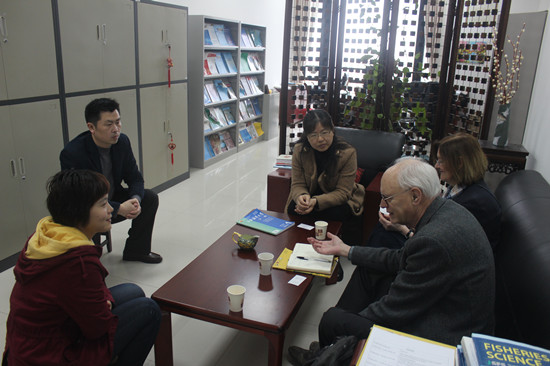 随后Cracknell教授和Lovell女士还走访了新葡的京官网学报编辑部,与《水产学报》和《新葡的京集团8814学报》的编辑们进行了交流。Cracknell教授详细介绍了其担任主编期刊的运作模式、经营方式、编委的职责等;Lovell女士就其负责的英文修改与润色服务进行了介绍。编辑部主任江敏教授也向对方介绍了新葡的京官网两本中文刊物的办刊状况,希望今后在提高办刊水平和国际影响力方面双方能有更多的合作。