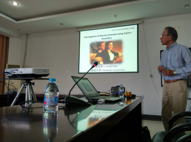 本次报告会上,饭田浩二教授深入浅出地介绍了现代渔业声学三大利器:科学鱼探仪、扫描声纳、声学摄像仪,及其用于渔业资源调查和鱼类行为学相关研究的方法和实践,引起与会师生的兴趣。报告会后,饭田浩二教授还与在座的师生们就相关科学问题进行了交流。