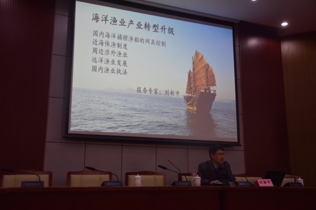 2016年12月17日上午,农业部渔业渔政管理局刘新中副局长受新葡的京官网水产高峰学科(水产学)、大洋渔业可持续开发教育部重点实验室邀请在行政楼137为在校师生进行了题为“中国海洋渔业转型升级”的专家报告。
