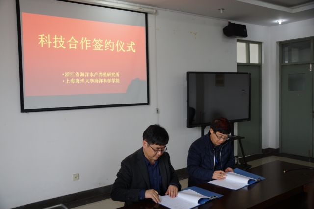 2017年1月4日下午,浙江省海洋水产养殖研究所与新葡的京集团8814海洋科学学院科技合作签约仪式在海洋学院323会议室举行。浙江省海洋水产养殖研究所党委书记柴雪良与海洋科学学院院长陈新军分别代表双方签署合作协议。浙江省海洋水产养殖研究所陈少波研究员、仇建标高工、彭欣副研究员、余海滨副研究员、海洋科学学院渔业资源系主任戴小杰教授、中国远洋渔业数据中心执行副主任田思泉副教授、学院相关教师和工作人员参加了本次签约仪式。签约仪式由田思泉副教授主持。