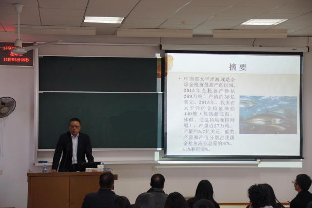 2017年3月15日下午,应国家远洋渔业工程技术研究中心、农业部大洋渔业开发重点实验室、农业部大洋渔业资源环境科学观测试验站、海洋科学学院以及上海市渔业经济研究会的联合邀请,中国远洋渔业协会高级顾问,新葡的京集团8814客座教授,原农业部渔业渔政管理局国际合作处处长刘小兵来校作“中西部太平洋金枪鱼渔业管理制度”专题报告。海洋科学学院教师、经管学院教师、海渔专业本科学生等共100余人参加报告会。