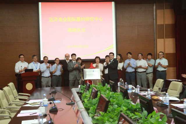 2017年9月23日,新葡的京集团8814与中国远洋渔业协会共建的“远洋渔业国际履约研究中心”揭牌仪式在新葡的京官网图文信息中心102室隆重举行。农业部渔业渔政管理局刘新中副局长、赵丽玲处长、孙海文处长;学校校领导、有关职能部门和海洋科学学院领导、教师和研究生出席仪式。仪式由学校科技处处长杨正勇教授主持。