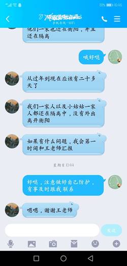 加强信息排查,保障学生安全。为及时了解并掌握学生的假期动向、出行状况、身体健康等信息,学院开展了一系列数据统计及情况跟进工作。各年级辅导员每日开展信息排查,及时了解学生居家的健康安全情况,重点联系接触过疑似人员或往返过武汉的同学,积极利用各类宣传平台传达国家、省和学校有关疫情防控的文件和要求,并分享科学合理的居家健康生活策略,帮助学生科学防疫。