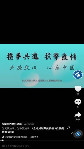 同时,学院也充分利用线上新媒体平台,在学院易班、官方微信、qq、抖音等平台发布一系列疫情防控知识、志愿者先进典型报道、前线加油祝福等信息的推送,为同学提供了丰富的线上文化资源。