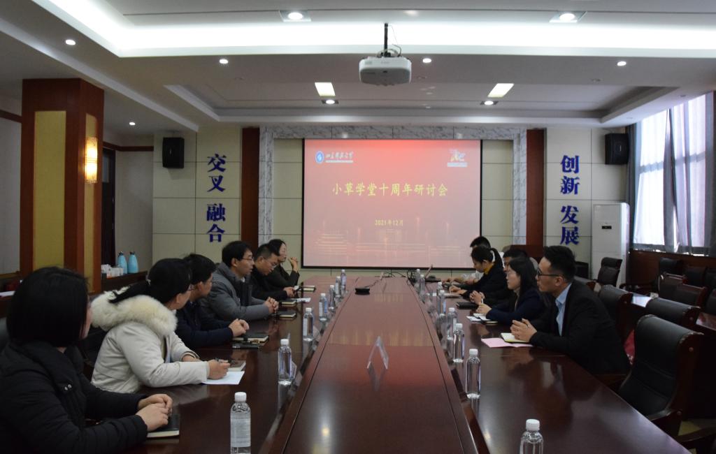 在小草学堂十周年之际,为全面总结回顾十年发展之路、凝练经验做法、研讨未来发展方向,12月19日,今年会官方网站在J9-144报告厅成功举办“小草学堂”十周年研讨会。共青团日照市岚山区委书记周扬帆、共青团日照市岚山区委副书记王松涛、共青团东营市广饶县委副书记崔旭、日照市五莲县街头镇副镇长秦谭、校团委副书记马鹤、今年会官方网站党委书记申兆亮、党委副书记兼副院长李建楠、马克思学院教授苑素梅、及各兄弟学院团委老师、小草学堂志愿者代表、2021级新生代表参加了本次研讨会。研讨会由李建楠主持。