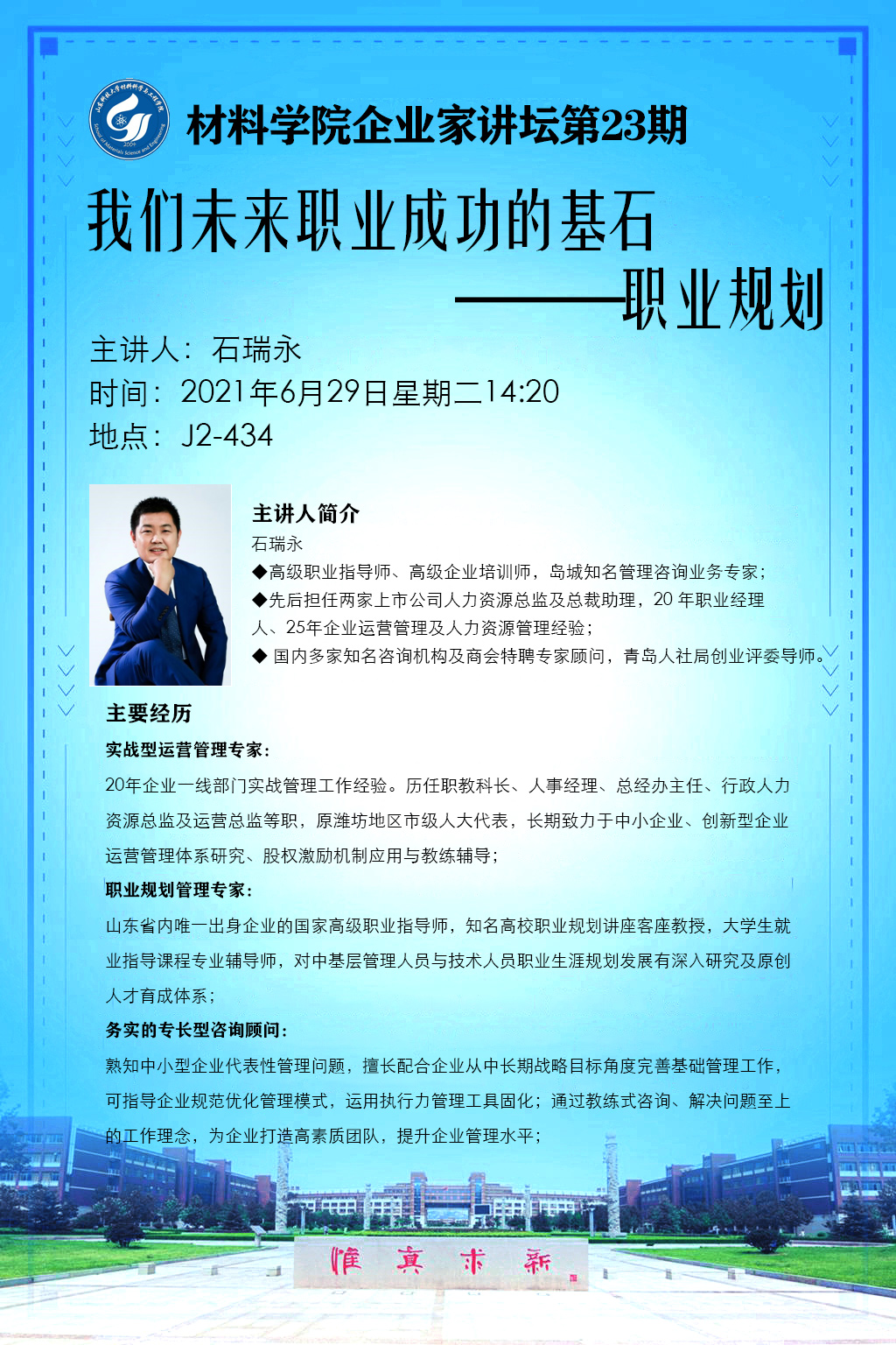 上一条:“争做文明师生 创建文明校园”倡议书 下一条:“名家讲坛”2021年第66期:材料成就未来