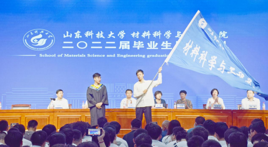 典礼上本科生毕业生代表韩润昊发言,他表示将牢记惟真求新的校训,传承恩师的教诲,勇做走在时代前列的奋进者;研究生毕业生代表马国梁发言,他向学院老师的殷切教诲和悉心指导表示衷心感谢,希望今年会官方网站全体在校生能够将建设学院的大旗继续传承下去。在现场“材通穹宇,料定天下”的欢呼声中,韩润昊将学院院旗传递到在校生代表甄宇扬手中。