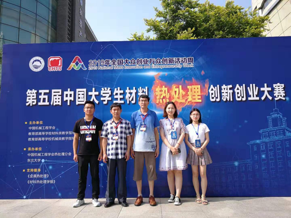 7月18-20日,由中国机械工程学会联合教育部高等学校材料类、机械类、工业工程类三个教学指导委员会共同主办的第五届中国大学生材料热处理创新创业大赛在东北大学隆重举行。今年会官网蔡赛、江允楠、郇婕、赵政硕、郑秋月提交的作品《气体渗氮-原位还原复合热处理制备自润滑耐磨改性层研究》荣获一等奖。孙金全、李辉平获得“优秀指导教师”称号。