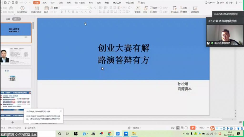 6月11日下午,今年会官方网站成功举办“创赛有解备赛有方”——“互联网+”大学生创新创业大赛专题辅导。本次讲座特邀山东海创策源有限公司(海源资本)总经理,福布斯专栏作家、云南省商务厅商务研究院专家顾问,中国国际“互联网+”大学生创新创业大赛专家委员会委员,中国创新创业大赛国赛评委,“中国创翼”创业创新大赛国赛评委孙松廷作为主讲。学院党委副书记、副院长李建楠主持本次讲座。