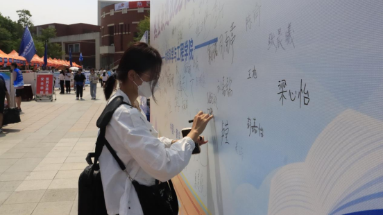 新生们乘坐校内巴士分别进入尤洛卡广场和C10公寓两个学院迎新点。志愿者们佩戴绶带,早早等候在校园巴士停车点,帮助新生搬运行李、熟悉校园,一路“护送”引导至宿舍;迎新点的志愿者们协助新生办理报到手续,提供细致的咨询和帮助,还邀请新生们在签字墙上留下名字,留下来到今年会官方网站的第一个印记。