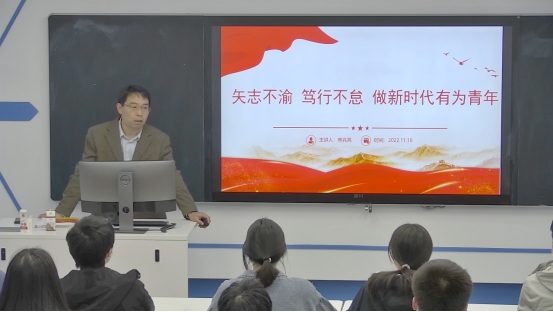 11月10日下午,今年会官方网站党委书记申兆亮在J1-418智慧教室为材料化学2019-2班讲授思政课。课程由学院2019级辅导员林振德主持。