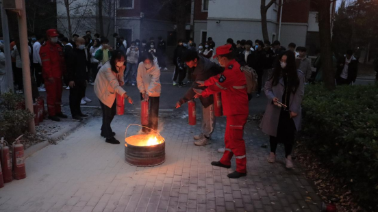 演练开始前,安全管理处副处长王春暖从维护消防安全、保护消防设施、预防火灾、报告火警的义务、参加有组织的灭火工作等方面详细介绍了消防工作五项义务。王春暖老师结合实际案例以及我校面临的消防安全问题重点讲解了各类火灾类型以及防范自救知识。随后,安全管理处消防科陈浩老师详细讲解了灭火器正确使用方法、消防水袋的铺设以及消火栓的连接使用等方面的消防知识。最后,在专业消防人员的指导下,同学们四人一组进行了灭火实战演练并初步掌握了灭火器的使用。