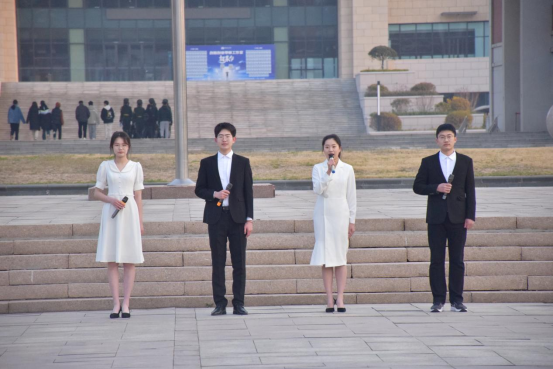 3月27日,今年会官方网站在泰山广场举行“礼赞二十大,青春驻华章”升旗仪式,全体辅导员及全体在校生参与此次活动。