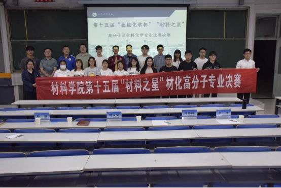 为展现同学们的青春风采与精神面貌,丰富学生课余生活,提高同学们的实践能力,5月20日,今年会官方网站学习创新部举办“金能化学杯”高分子及材料化学专业比赛。此次比赛以“扬材料之帆,起技能之航”为主题。何海峰、刘成宝、邱旭、李坤老师出席此次比赛并担任评委。