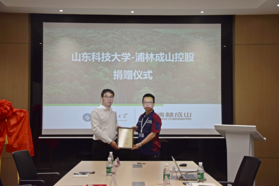 申兆亮代表学院、周博代表浦林成山控股有限公司共同签订合作协议和捐赠协议;李建楠、韩永芹分别与许晓林、袁铭辰为产学研基地、就业创业基地揭牌;李建楠为许晓林颁发了研究生德育导师聘书。