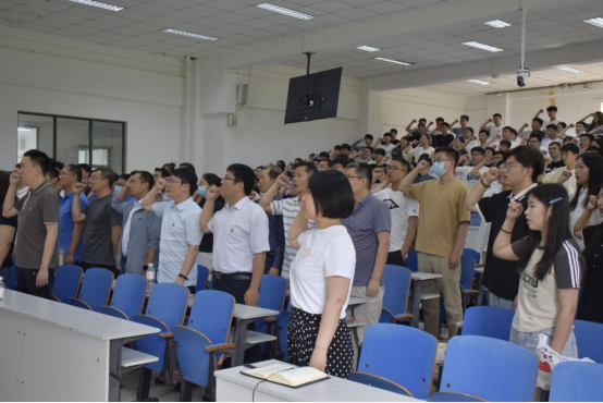 党课结束后,全体党员在教工第一党支部书记朱慧灵的带领下进行了新党员入党宣誓和老党员重温入党誓词。(通讯员:董静,摄影:崔瑞洋)