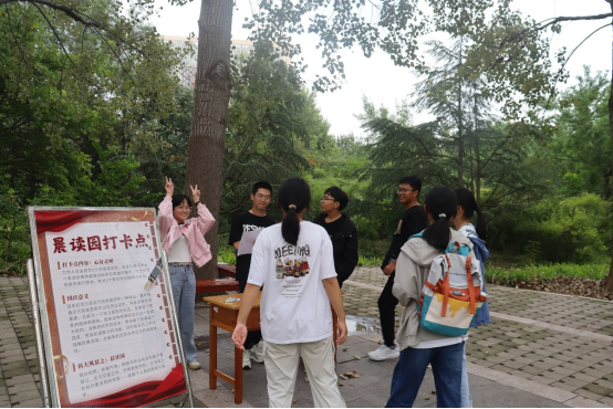 活动以小组形式进行。参加活动的同学首先在泰山广场集合,根据线索提示前往打卡点打卡并盖章,任务完成后回到泰山广场集合,最后根据比赛成绩发放奖励。活动共设11个打卡点,其中包含3处隐藏打卡点,获得盖章的可额外获得奖励。值得赞扬的是,每一位参赛同学都积极地完成每一个打卡点的任务,展现了材料学子朝气蓬勃的精神面貌。