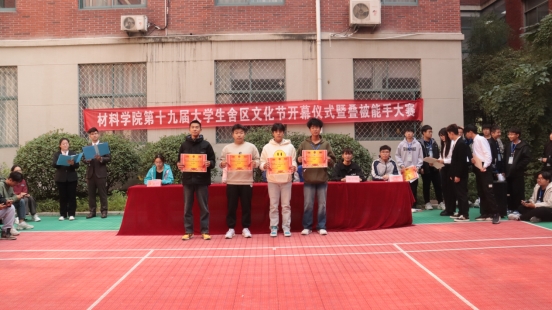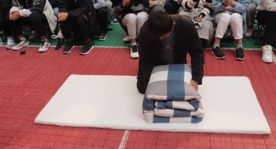 动员会后,叠被大赛正式开始。叠被大赛分为“打好行囊上战场”、“好朋友一起来”、“道具抽不停”等环节,总共十支队伍参加。各班同学们赛前口号响亮,人人斗志昂扬,参赛人员沉着冷静,赛时动作行云流水,叠被时一气呵成,啦啦队热情参与,为各位选手加油助威。经过激烈的角逐与比拼,最终金属三班荣获一等奖,高分子一班、高分子四班荣获二等奖,新能源一班、新能源二班、金属二班荣获三等奖,金属一班、高分子二班、高分子三班、金属四班荣获优秀奖。