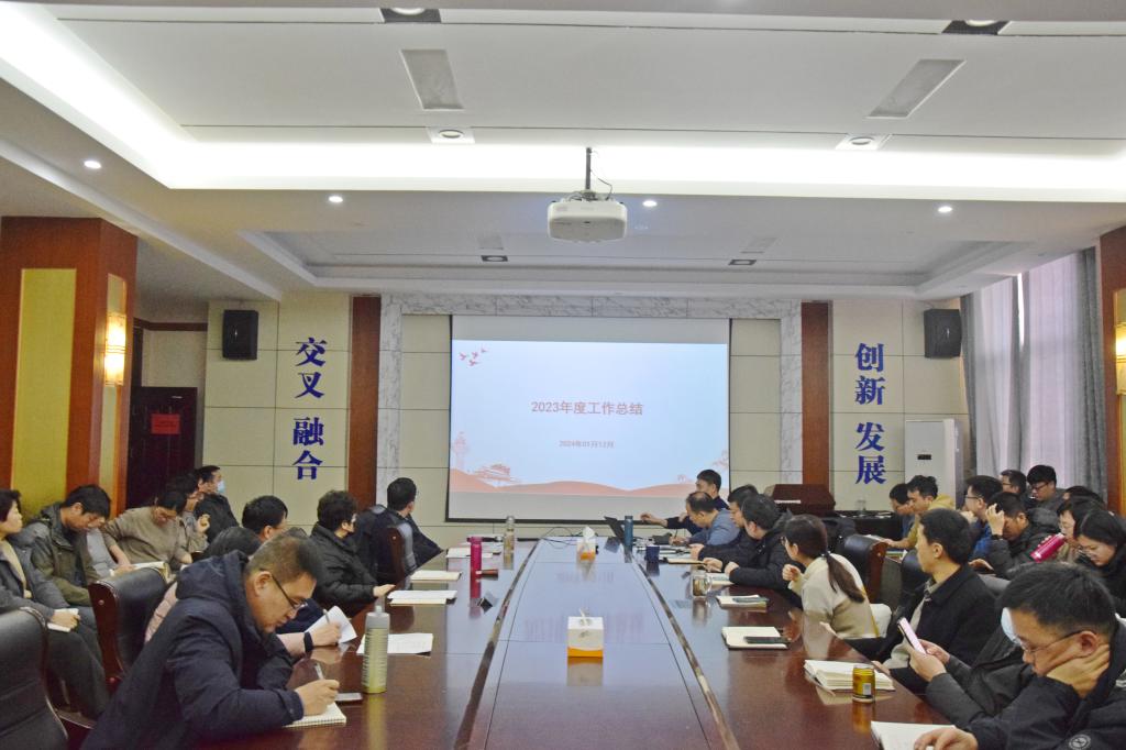 申兆亮作总结讲话,他首先对2023年全体教职工的辛勤付出表示感谢,同时为更好的完成2024年学院发展目标,他对全体教职工提出三点希望:一是希望全体教职工增强大局意识、认清发展形势,努力将个人发展融入学院整体规划之中;二是进一步解放思想、创新教育科研方式,紧紧围绕立德树人的根本任务,努力在学科建设、教育教学、科研工作等方面取得新的突破;三是强化担当作为,严格落实2024年各项工作任务,推动学院高质量发展。