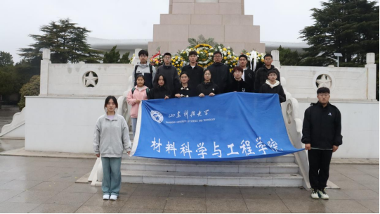 参加活动的同学们先在泰山广场集合,随后共同乘车前往黄岛区烈士陵园。在工作人员的引领下,同学们参观了烈士纪念馆,重温历史,缅怀烈士的丰功伟绩。参观结束后,全体同学在烈士纪念碑前肃立,由领誓人带领,面向团旗宣誓。随后同学们为烈士先辈们整理摆放墓前的花束,并为烈士默哀。