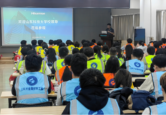 在海信空调有限公司,海信人力资源部金辉、新品工艺室主任李孝庆、生产部主任王言国以及优秀校友武茂盛等接待了李敏等师生一行。师生共同参观了智慧展厅和生产现场。随后,公司各部门负责人向师生介绍了公司发展历程、人才需求、核心产品和空调基础知识等,并带领学生进行了产品拆解,让学生更直观地了解了空调构造和作用。(通讯员:张春芝、孙金全)