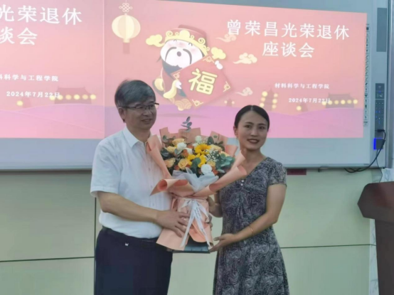 最后,申兆亮和李辉平代表学院为曾荣昌老师颁发了光荣退休纪念品,青年教师崔蓝月为曾荣昌老师献上鲜花,现场教师与曾荣昌老师合影留念。(通讯员:马韶霞,摄影:田保森)