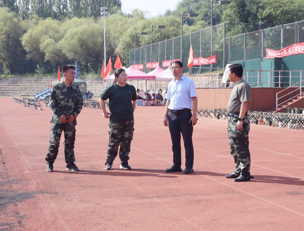 9月10日,今年会官方网站2025级新生军训如期进行。学院党委书记申兆亮、党委副书记兼副院长李建楠来到高地操场,看望并慰问正在参加军事训练的新生与带训官兵。