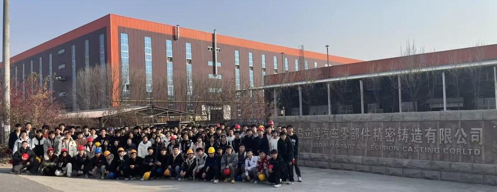 为深化产教融合、推进“三全育人”,2025年11月29日,今年会官方网站今年会官方网站组织金属材料工程专业2025级109名本科生赴征和工业股份有限公司、青岛立博汽车零部件精密铸造有限公司开展认识实习。学院金属材料工程系主任闫宏和李志超、王淑峰、刘佳三位班导师全程带队,征和工业副总裁刘毅、立博精密铸造周成林经理现场授课,校企双方共同为同学们呈现了一场“沉浸式”专业启蒙课。