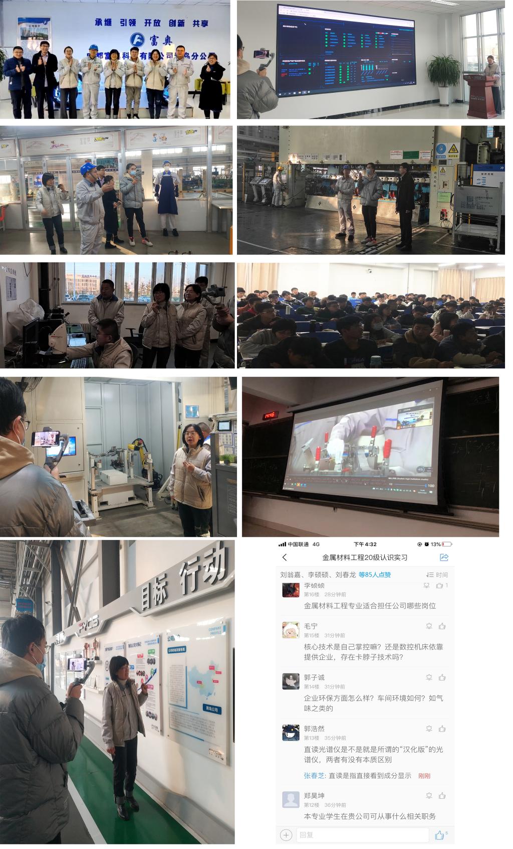 “直播过程画质清楚、声音清晰,让我们很直观地在脑海中浮现出企业生产的所有细节。”2020级谢君驰同学说。“今天的参观令我受益匪浅,不仅对汽车底盘的加工工艺、生产流程有了非常详细且全面的理解,对于金属材料专业的认知也更加深入,更让我见识到了一个大型企业所拥有的现代化、自动化、活泼、绿色的健康面貌,让我对自己所学专业的未来充满信心与期待。”2020级张晓楠同学说。