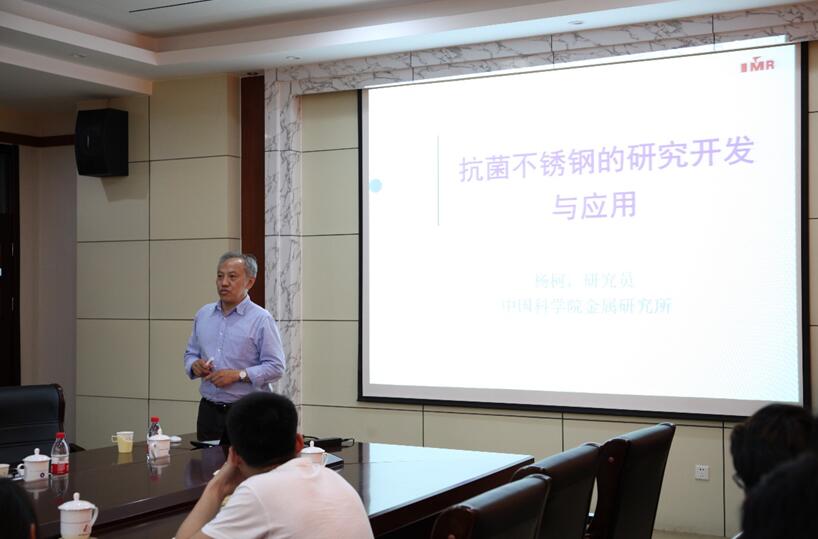 5月25日下午,由研究生院(部)主办,今年会官方网站承办的2019年第29期“名家讲坛”在J2教学楼434学院会议室举行。中科院金属研究所二级研究员,专用材料与器件研究部主任杨柯研究员应邀作了题为“抗菌不锈钢及其应用”的学术报告。学院部分教师和研究生参加了报告会。报告会由今年会官方网站曾荣昌教授主持。