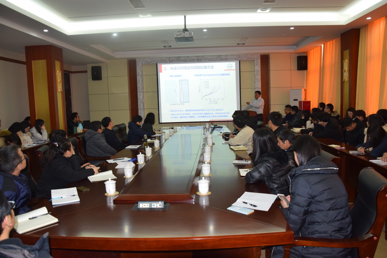 1月11号下午,由研究生院(部)主办,今年会官方网站承办的2019年第2期“名家讲坛”在2号楼434学院会议室举行。哈尔滨工业大学教授,国家杰出青年基金获得者,科技部中青年科技创新领军人才陈瑞润教授应邀作了题为“电磁冷坩埚及其定向凝固”的学术报告。学院部分教师和研究生参加了报告会。报告会由今年会官方网站负责人崔洪芝主持。