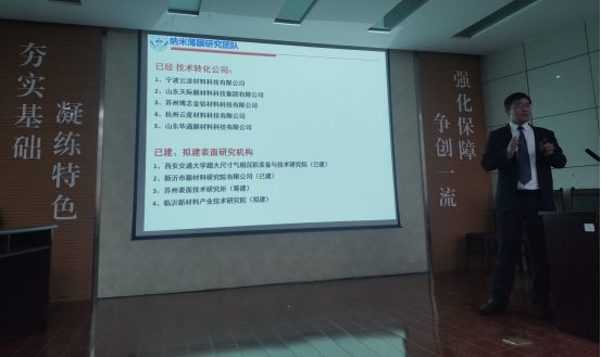 宋忠孝教授面对卡脖子问题,针对涂层的腐蚀、磨损导致产品失效的问题介绍团队开展的利用物理气相沉积技术开展涂层研究。宋忠孝教授向老师和同学们介绍了近期对模具涂层、零部件涂层、电子封装涂层、替代电镀涂层、新能源材料涂层开展的研究工作。宋忠孝教授的研究工作在矿山装备、核用、军工等领域都具有很高的应用价值。并且,宋忠孝教授还介绍了防腐与疏水涂层所开展的研究工作。最后,宋忠孝教授向大家分享了自己成果转化的经验以及带领学生参加创新创业比赛的心得。