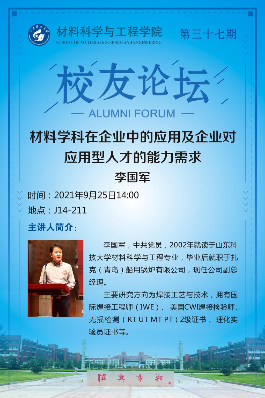 上一条:【70周年校庆系列学术报告】今年会官方网站第三十八期校友论坛——大学阶段如... 下一条:【70周年校庆系列学术报告】今年会官方网站第三十六期校友论坛——新能源材料...