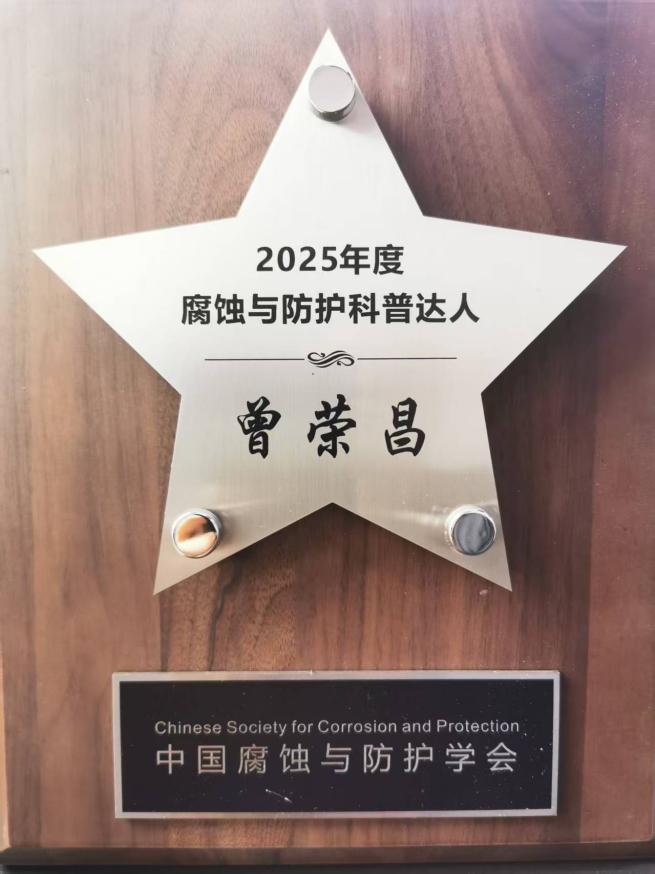 曾荣昌教授荣获“腐蚀与防护科普达人”称号:以艺术之美点亮材料科学之光