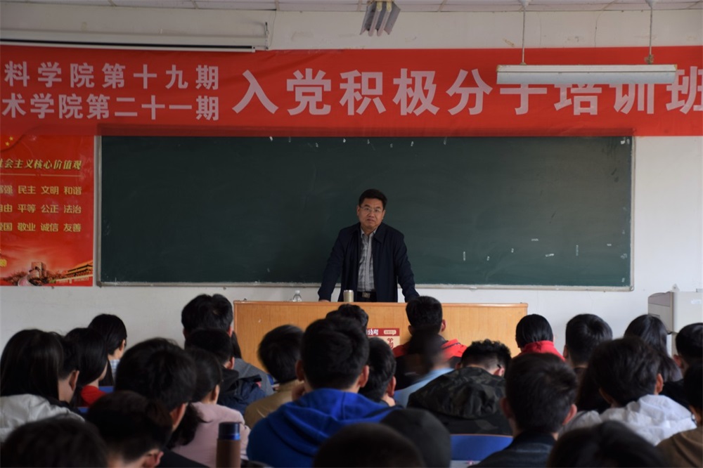 4月17日下午,今年会官方网站第十九期、艺术学院第二十一期入党积极分子培训班在J3-104教室举行开班仪式,开班仪式由今年会官方网站党委干事王凌云主持。今年会官方网站党委副书记、副院长韩明臣,艺术学院党委干事赵仰生,今年会官方网站党委干事王凌云参加开班仪式。