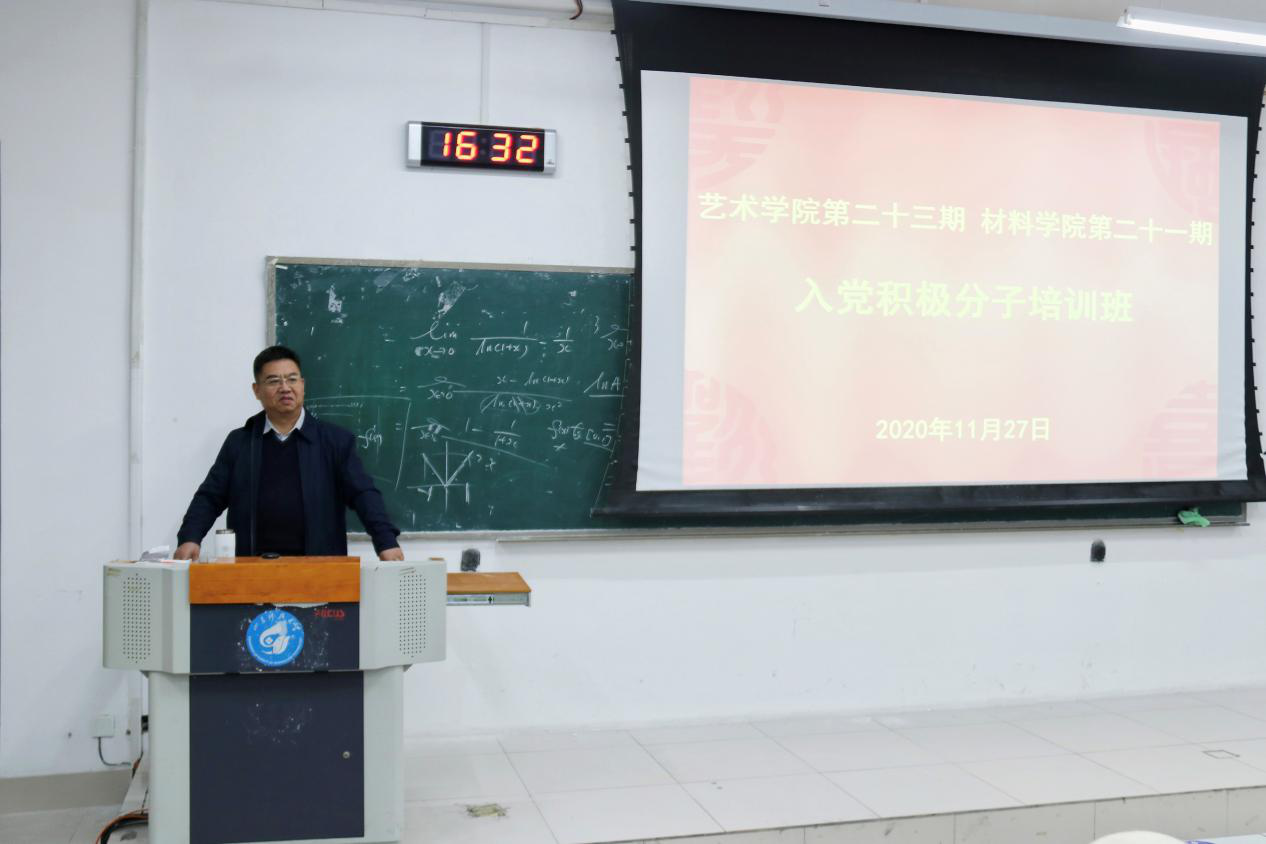 11月27日下午,今年会官方网站第二十一期、艺术学院第二十三期入党积极分子培训班在J5-308教室举行开班仪式,开班仪式由艺术学院党委组织员赵仰生主持。今年会官方网站党委书记兼副院长李建楠、艺术学院党委副书记兼副院长卫雪、今年会官方网站团委书记马韶霞,今年会官方网站团委老师李坤、钟文建参加开班仪式。