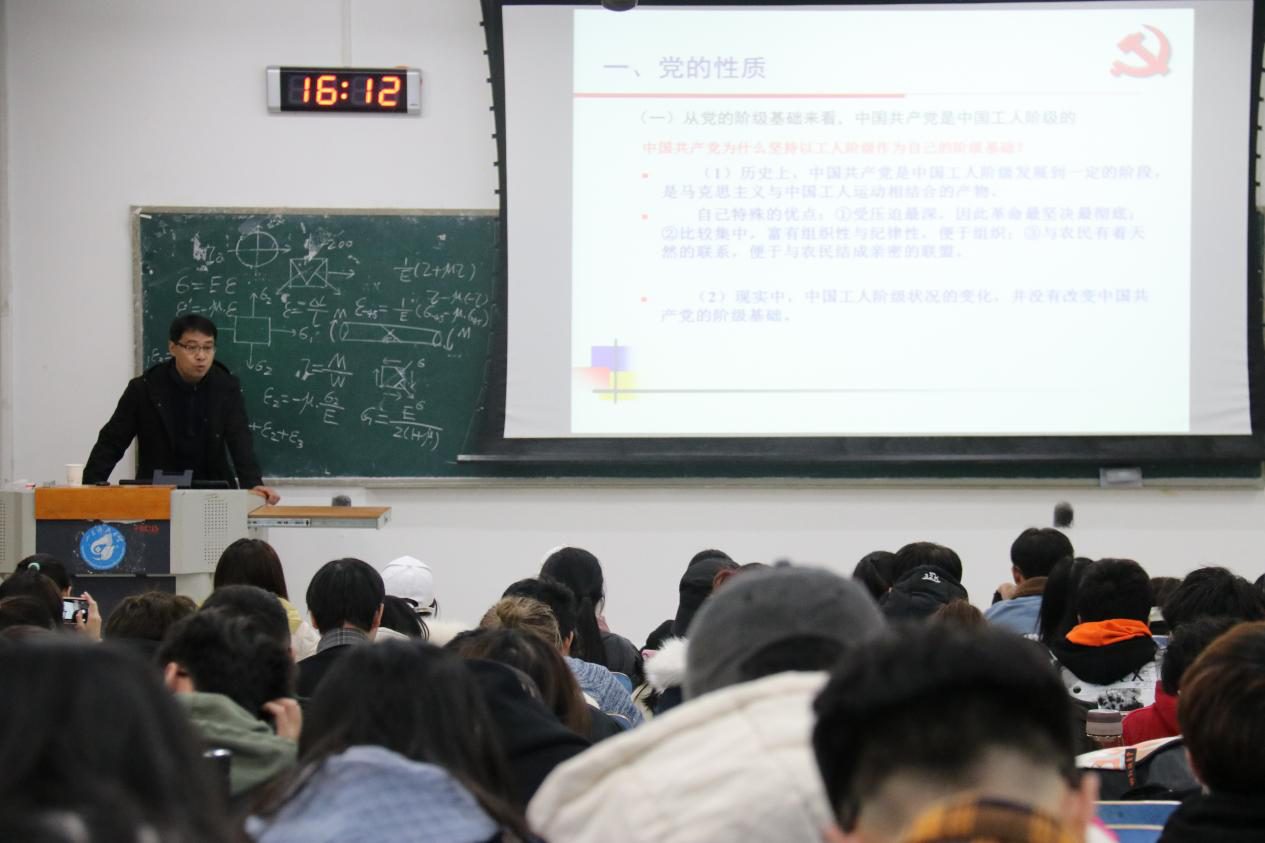 11月27日开班仪式后,校党委宣传部副部长秦晓钟为学员们讲授了《中国共产党的诞生和发展》的相关内容。他从中国共产党诞生前的大背景切入,通过讲解五四运动、到秋收起义等历史事件,展示了中国共产党发展壮大的脉络历程,更好地证明了中国共产党的诞生是人民的选择,具有历史的必然性。他勉励全体学员在大学期间一定要有为民族复兴而读书的情怀,要不断学知识、涨本领、增才干。