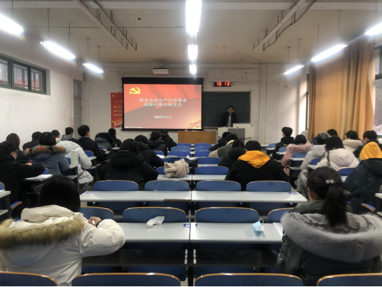 1月6日,今年会官方网站党委书记申兆亮以“落实全面从严治党要求,做新时期合格党员”为题,分别讲述了全面从严治党的基本内涵,全面从严治党的重要实践,并强调了明确党员合格标准重要性。申兆亮指出,每位学员作为新时代青年应不断努力,发挥自我特长,明确定位,不辜负国家的培养,以党员的标准严格要求自己,并做好表率作用,争取早日入党。