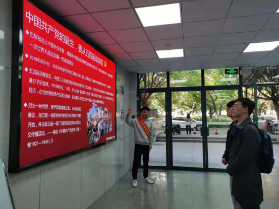 4月20日为“每日打卡学党史”活动第一天,部分同学早早来到电子屏前学习《中国共产党的诞生,要从五四运动讲起》这一讲内容,进行驻足学习、讲解、登记打卡,场面非常“火爆”,不到10分钟已经有30余名师生打卡登记。(通讯员:林振德)