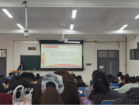 4月19日,校党委宣传部副部长秦晓钟为学员们讲授了《中国共产党的诞生和发展》的相关内容。他从中共一大浙江嘉兴南湖的红船讲起,介绍了五四运动、到秋收起义等历史事件,展示了中国共产党发展壮大的脉络历程,更好地证明了中国共产党的诞生是人民的选择,具有历史的必然性,没有共产党就没有新中国。
