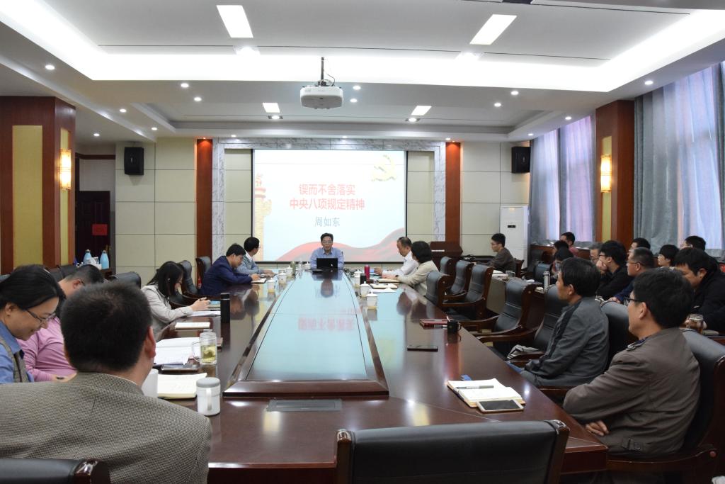 周如东以“ 锲而不舍落实中央八项规定精神”为题,结合丰富的典型案例,从中央八项规定精神的主要内涵、产生背景、具体内容、执行成效等方面对全体教职工做了详细阐述。周如东表示中央八项规定开启了全面从严治党的大格局,全体党员要从自身做起,加强作风建设,锲而不舍贯彻落实中央八项规定精神。