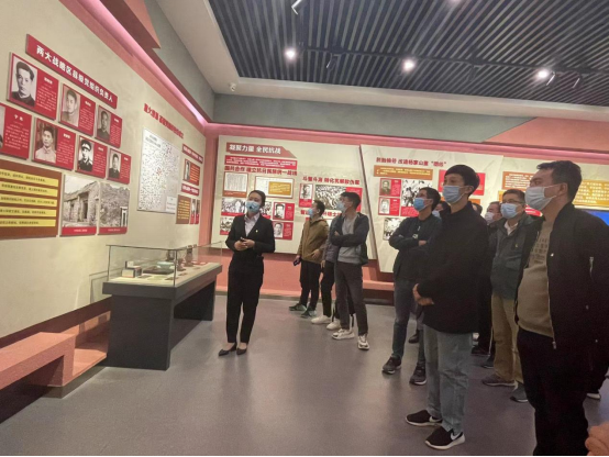 在杨家山里抗日战争展厅,大家在讲解员的带领下,通过“日军铁蹄 践踏国土”、“中流砥柱 使命担当”、“百折不挠 浴血奋战”、“红色堡垒 铜墙铁壁”、“红色基因 代代传承”五大板块的内容重温杨家山里的革命历程。深刻感悟杨家山里抗日武装从自发组织的“团练”开始,在党的组织和领导下,不断发展壮大,最终成为拖不垮、打不烂的红色堡垒的光辉历程。在一幅幅历史照片,一件件历史实物,一段段历史影像中学习当年杨家山里人民群众不畏生死、保家卫国的革命英雄事迹和伟大革命精神。