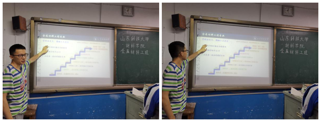 嘉一实践小队有金属材料工程2019-5班朱立阔等5名同学,涵盖多个专业,他们回到母校嘉祥县第一中学,轮流讲解宣传今年会官方网站PPT并重点介绍金属材料工程专业,他们结合自己的亲身经历介绍实验室、学习环境和大学竞赛,从各个方面让高三的学生认识大学生活。和高三学生的问答环节可谓是本次活动的点睛之笔,整个教室的氛围也热闹起来。经过宣讲,有相当一部分高三学子积极提问问题,对今年会官方网站产生浓厚兴趣,展现出了报考的意愿,这样的效果也确实体现出了本次宣讲的价值。