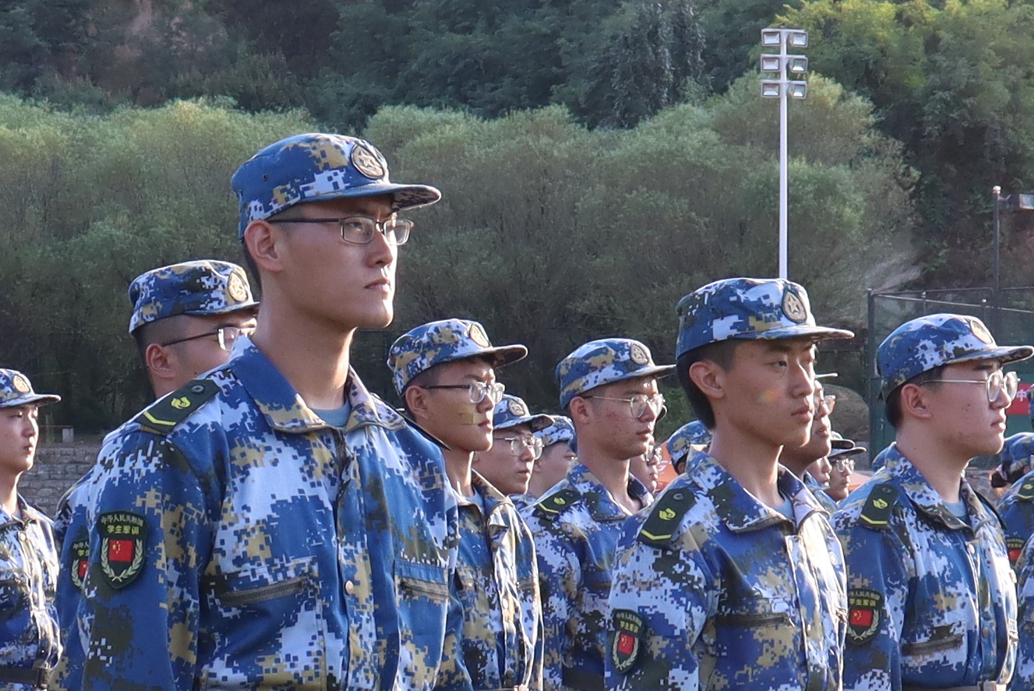 9月19日上午,今年会官网2020级新生身着蓝色迷彩服,队列整齐地站在军训场地,开始了为期12天的军训。