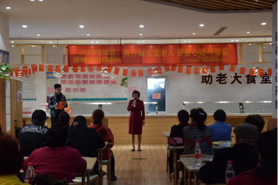 团队到达养老机构向老人表示关怀与慰问,通过帮老人打扫卫生、与老人下棋打牌、同老人面对面聊天、给老人讲述时政及教授保健知识等方式拉近志愿者与老人之间的关系。之后,志愿者为老人们送上精心准备的文艺节目,材料化学2019-1班皇甫亚楠演唱的《明天会更好》和新能源2020-2班的姚宇城朗诵的《当你老了》,体现了后辈对老人美好生活的祝愿及对老人已入暮年的宽慰,材料化学2019-1班庄英赞带来的京剧和高分子2020-1班李博演奏的二胡既弘扬了中华优秀传统艺术又加大了老年观众的参与度,还有激动人心的轮滑、声情并茂的合唱让爱心升温。最后进行合影留念,老人热情的双手和真挚的眼神久久不愿从志愿者身上移开。