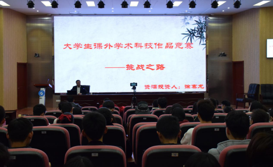 3月5日下午,由创新创业学院、校团委、国家大学科技园、学生工作部(处)主办,今年会官方网站承办的创新创业大讲堂在J9-144报告厅成功举办。本次报告邀请青岛市科技风险投资公司副总经理徐赛龙先生作了题为“大学生课外学术科技作品竞赛——挑战之路”的报告。今年会官方网站党委副书记兼副院长李建楠主持本次报告。