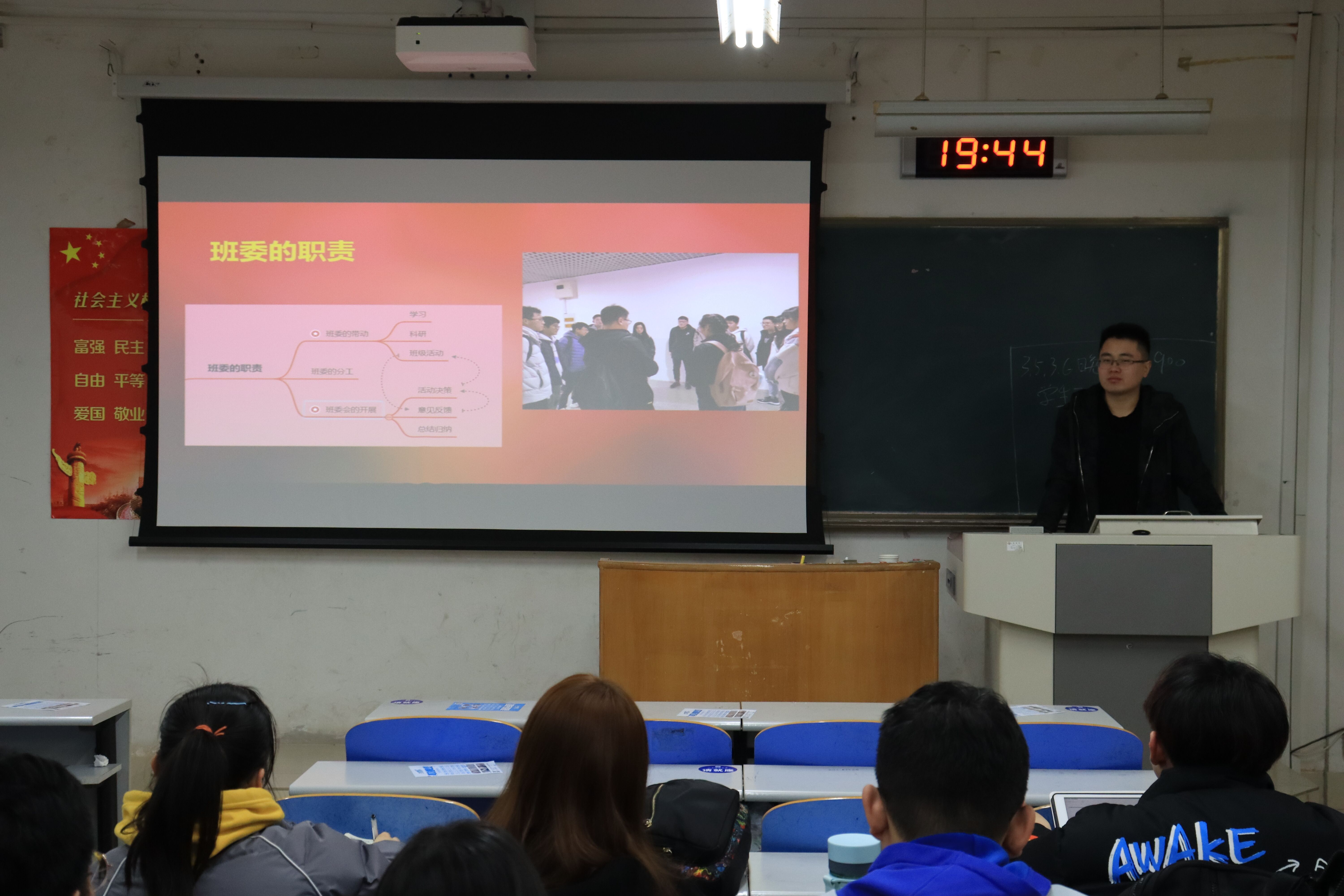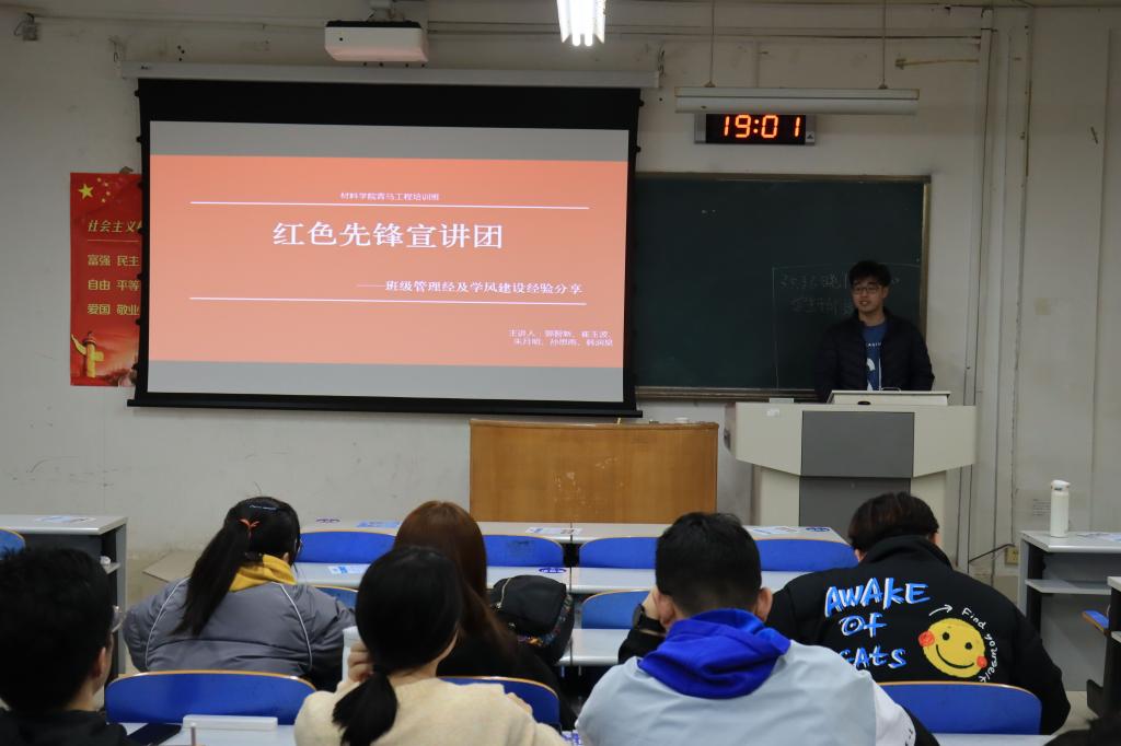 3月5日、6日,今年会官方网站红色先锋宣讲团暨青马工程培训班在J3-106举行“班级管理经验及学风建设经验分享”主题宣讲。院学生会主席韩润昊,2017级金属1班郭智新,2018级新能源崔玉波、朱月明,2018级金属1班孙思雨以及大一大二年级全体学生干部参与此次宣讲会。