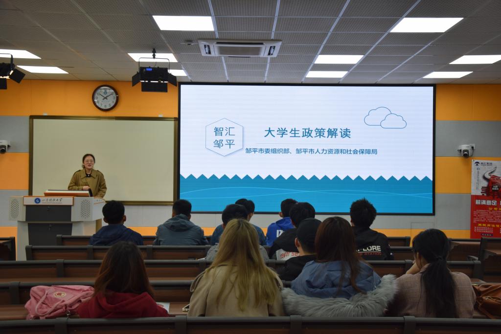 活动期间,来校嘉宾参观了实验室;邹平市组织部作了邹平市人才政策推介;各企业招聘负责人分别播放了有关企业宣传片,介绍了单位概况、人才政策、岗位需求等,并与参会学生进行了深入交流。(通讯员:林振德)